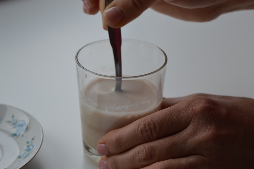 To facilitate the fermentation process, I always add a pinch of sugar and a pinch of plain wheat flour to the warm milk. I stir the yeast well until it dissolves. Then I cover the glass and leave it in a warm place. Depending on the room temperature, the yeast will take 3 – 7 minutes to rise.