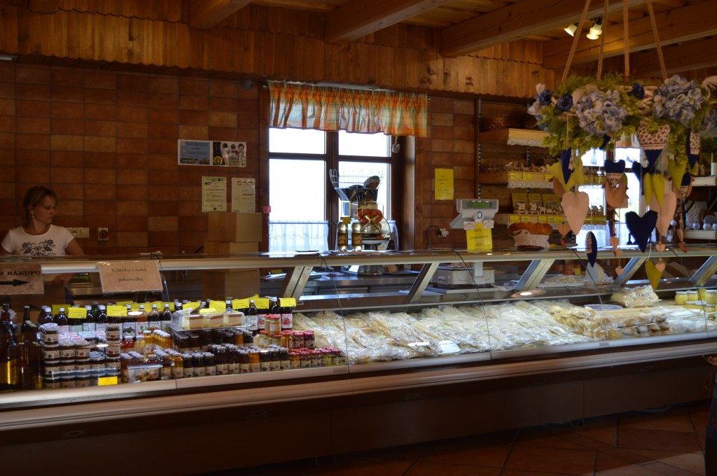 After a meal, I always end up in the shop next to the restaurant, where they sell all their artisanal cheeses together with other products from the farm. In the showroom adjacent to the shop you can see how parenica (parenitza), korbáčiky (korbaatchiki), and other traditional Slovak cheeses are made.